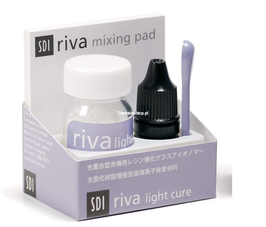 dentinu, uvolňuje fluor, vyznačuje se vysokou odolností proti drcení a krátkou dobou tuhnutí. Riva Light Cure má širokou škálu aplikací jako výplňový materiál.
