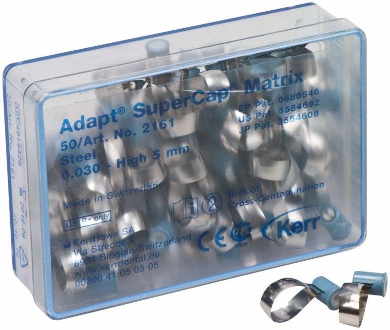 Das System ermöglicht eine schnelle, einfache und standardisierte Anwendung. Die einzigartigen, dünnen ringförmigen Matrizen von Adapt SuperCap werden auf der Grundlage statistischer Daten entwickelt, die eine bessere Darstellung der anatomischen Form der Zähne bieten.