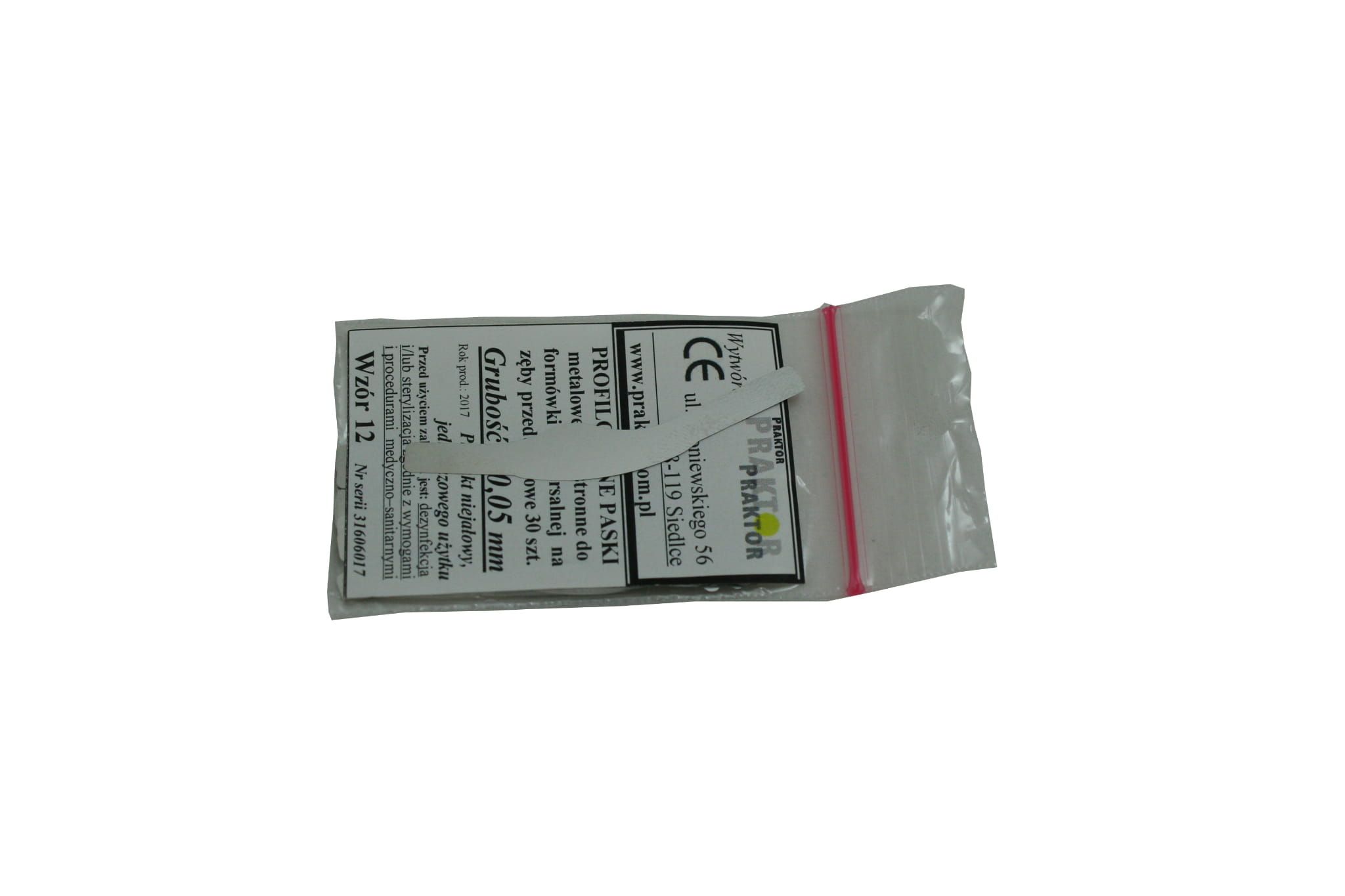 Einseitig profilierte Metallstreifen für Universal-Prämolarenmatrize . Unsteril, Einmalgebrauch. Dicke 0,05 mm.