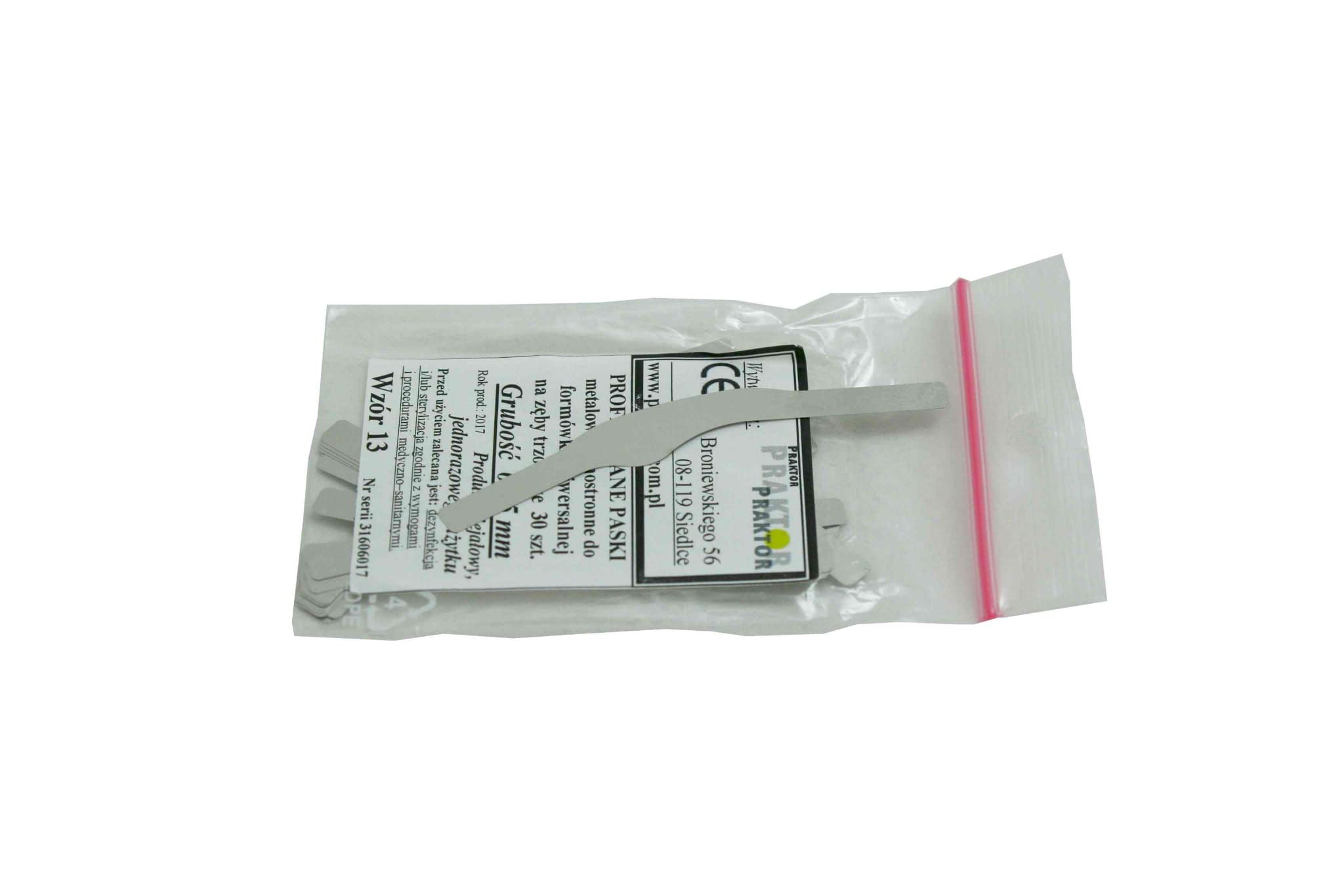 Einseitig profilierte Metallstreifen für Universal-Molarenmatrize . Unsteril, Einmalgebrauch. Dicke 0,05 mm.