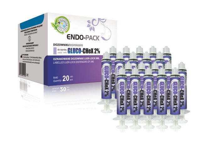 Package: 20 pcs of labeled 5ml luer-lock dispensers for Gluco-Chex